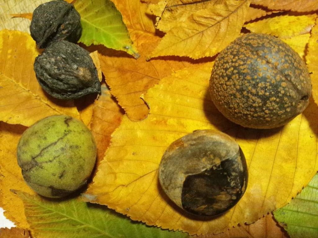 おみやげは葉っぱと 木の実栃の実は植えてみる予定
