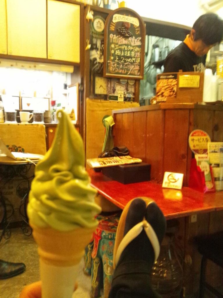 んでも プラス五十円で エーデルクリームと スペシャル抹茶の ミックスにしました