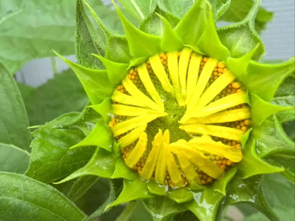 雨に濡れて ひゃっ と 目をつむったような 向日葵