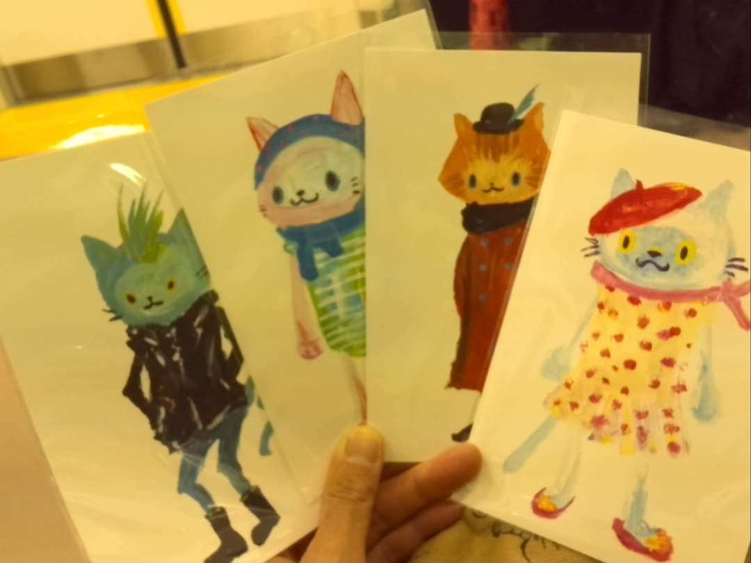 宮本悠合(みやもとゆり)さんの 猫絵を 観て 飲み食いしたものの
