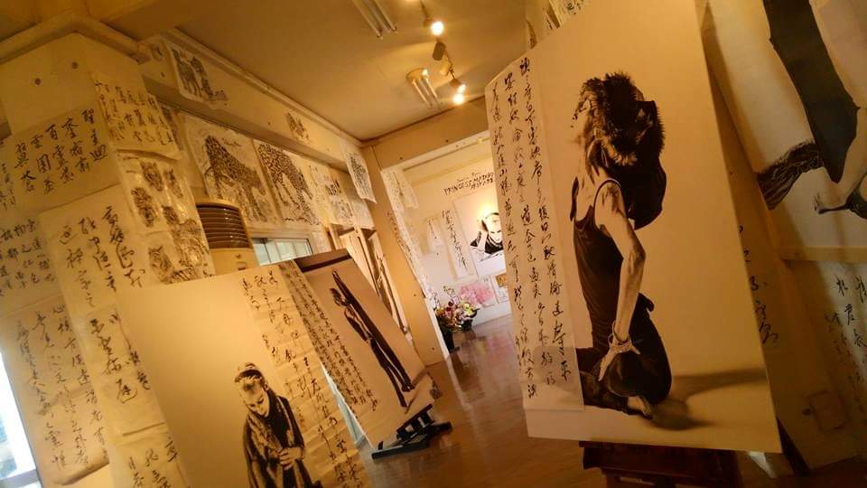書家 長谷川まどかさん(雅号 遊舟) もしくは モデル MADOKA HASEGAWA による 書の コラボレーション at 中本誠司現代美術館