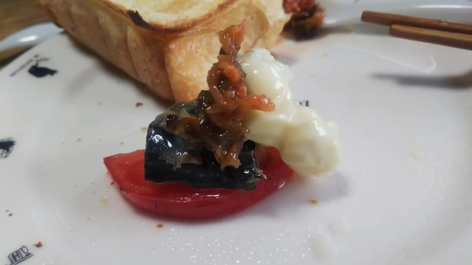 鯖缶(水煮)と マヨネーズと カリフラワと トマト…のとこに ぼっくりジャム トッピング