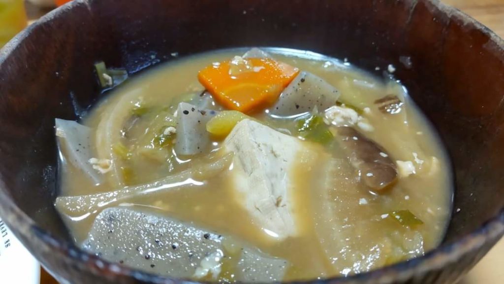 本日のけんちん汁…森家 従来の ぶだずる的なものではなく 豚不在の けんちん汁となっております
