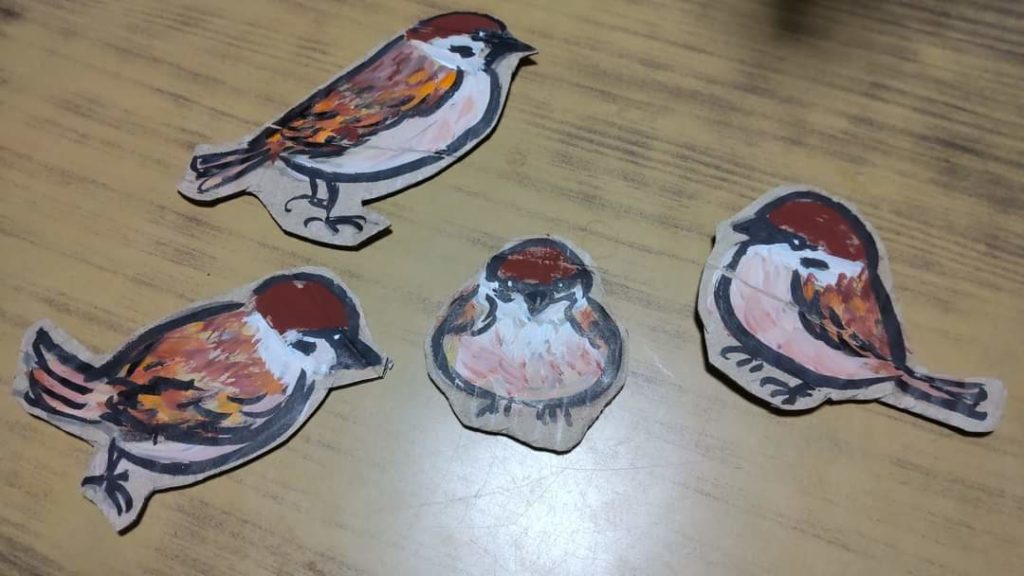 画像は 保育園壁絵から 引き取ってきた すずめっこさんたち