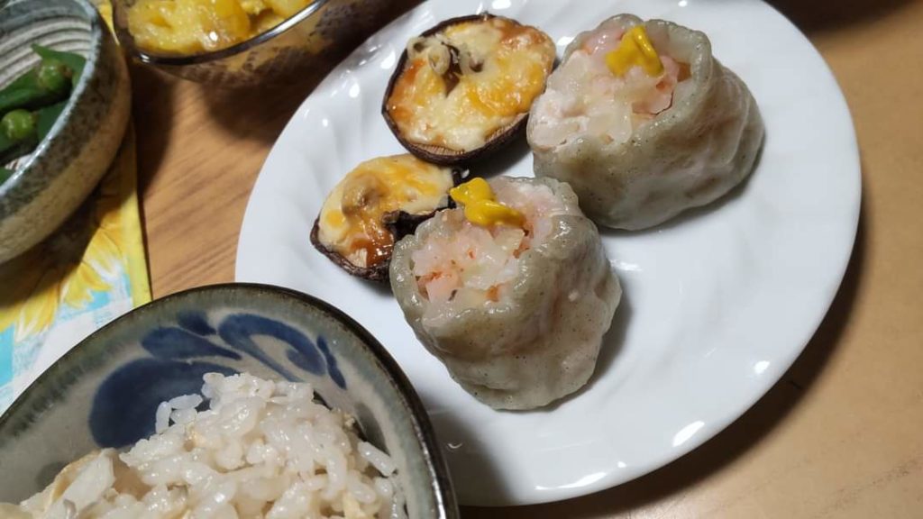 椎茸に 余りがちな 納豆のたれを ちょいと落として シュレッドチーズ散らして オーブントースターで 焼いたやつ