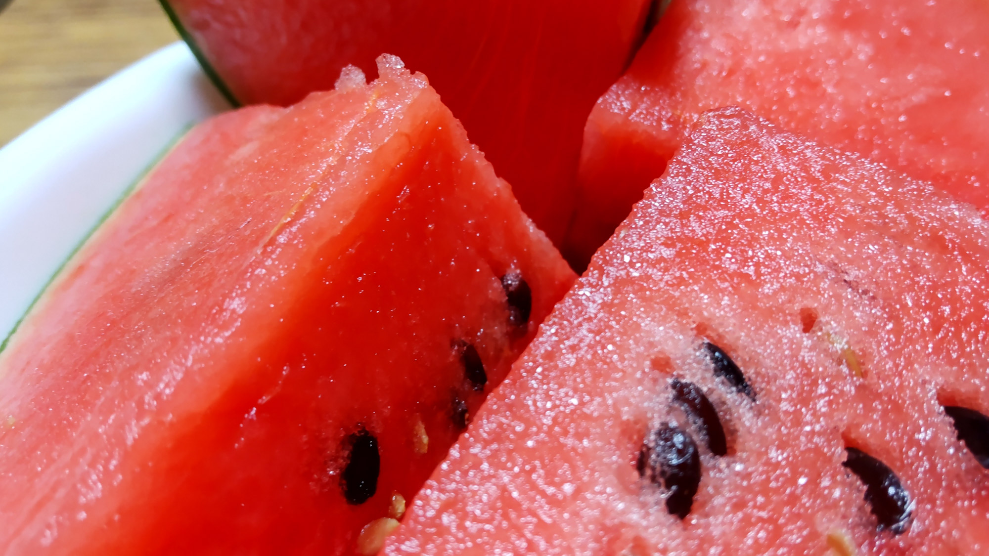 三人で 初西瓜(まるまんま買ったの 今年初めて)