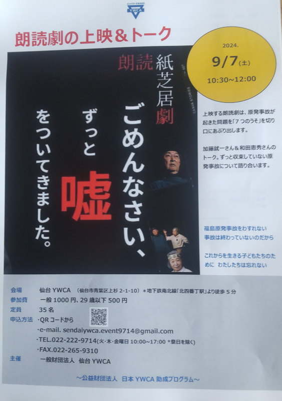 仙台YWCAにて 朗読劇紙芝居(映像)『ごめんなさい、ずっと嘘をついてきました。』の 上映会です