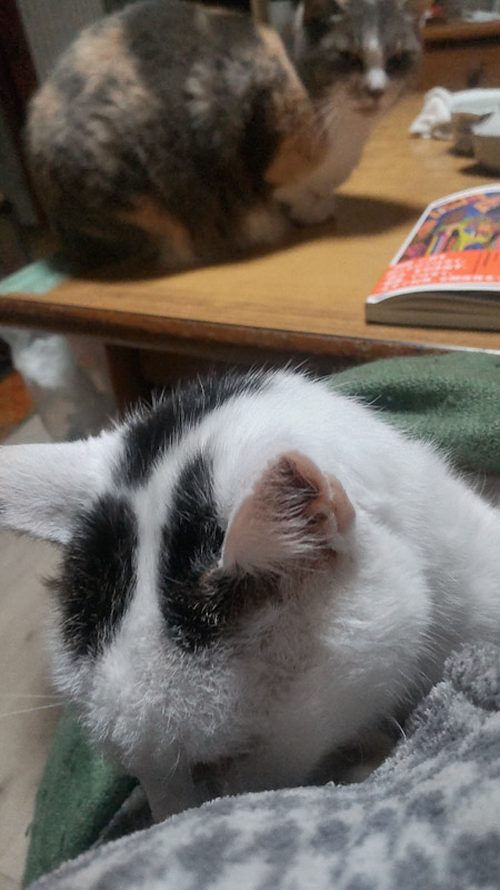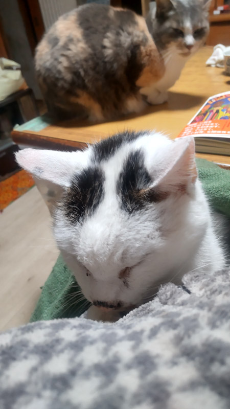 飯台のとこで「40分くらい(あんちゃによる)」うすだーぷらこ(避妊済 4歳)を 肩に乗せたまんま うたた寝してしまって