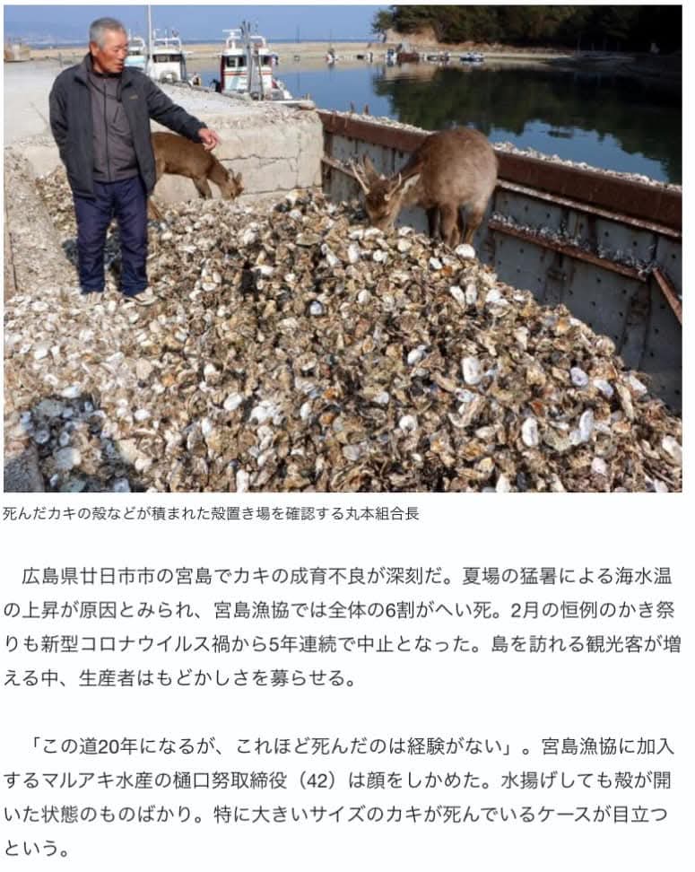 広島名産の牡蠣が大量死している。