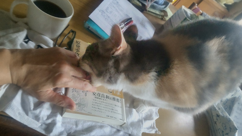 身体を 拭くだけでなく かりかりしてけろ かまってけろ!アピールの うすだーぷらこ(避妊済 5歳)から あむあむっ とされてしまった