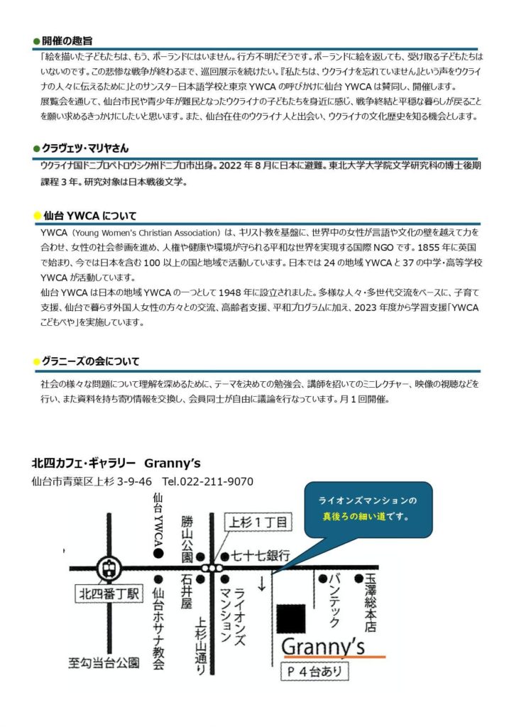 仙台YWCA主催 グラニーズの会 共催という形での 絵画巡回展です(巡回展は 戦争が終わるまで あちこちへとバトンが渡され 続けられるそうです)