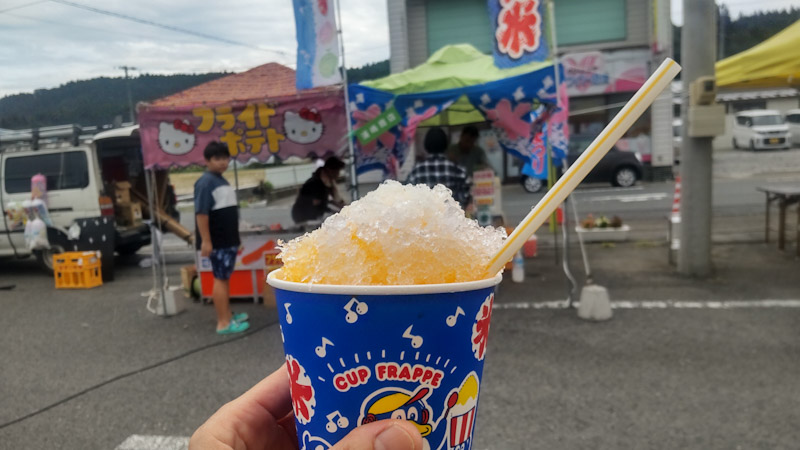 走り出す前に お祭り会場で マンゴーミルクかき氷買って