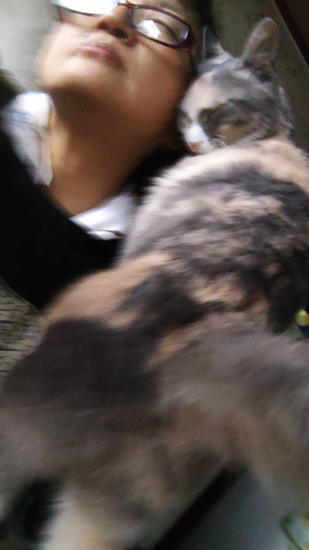 だらっだらに 雨に濡れて帰ってきた だーちゃん(避妊済 6歳)の 毛を拭く