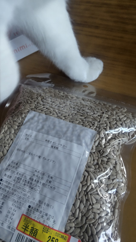 その買い物の品々の中に ブルガリアの向日葵の種の 大袋 見切り品 てのがあり