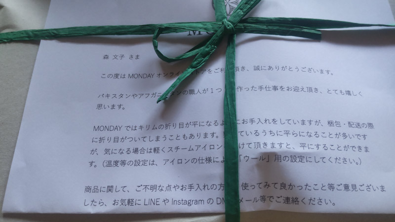 申し込みののちの 連絡メールや 梱包に関する ひとつひとつが なんとも 愛情がこもった感じで 素敵♪