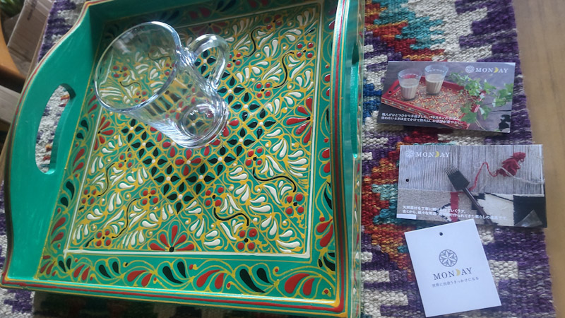 パキスタンの 手作りお盆と チャイグラスを 注文した