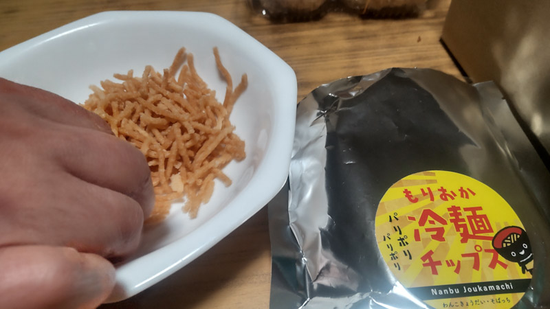 盛岡ふるさと納税返礼品にもなってる 盛岡冷麺チップスに 安代さんの オリジナルウェットティシュ付いてる スペシャルセット