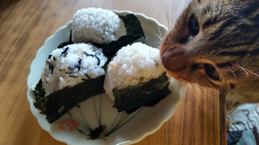 やたらと幅の広い 食べづらそうな 三角おにぎり三種