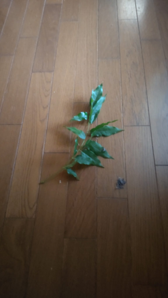 藤の葉柄ごと すずめこさんを 咥えて 駆け込んできて