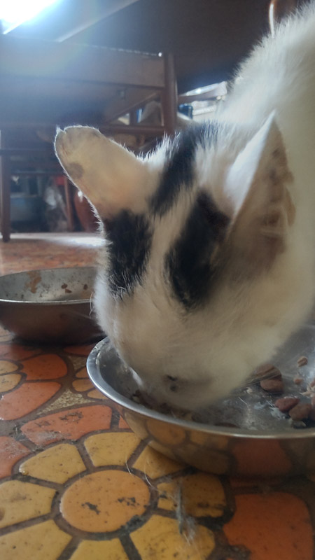 薬混ぜの お年寄りフード差し上げてるとこへ