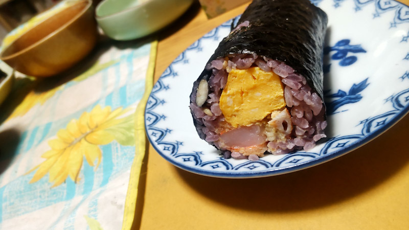 母の目の前で 恵方巻 巻き 巻きしてみる