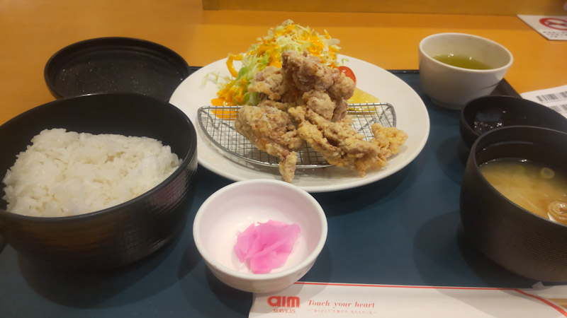 ちょ と 割高だけど そのなかでも 安い方の 鶏の塩唐揚げ定食で お腹満たして