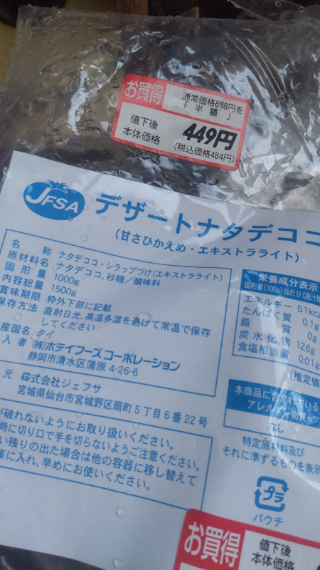 業務用食品サトー商会の 見切り品ワゴンで ナタ・デ・ココ 大袋を 買っちまうという…