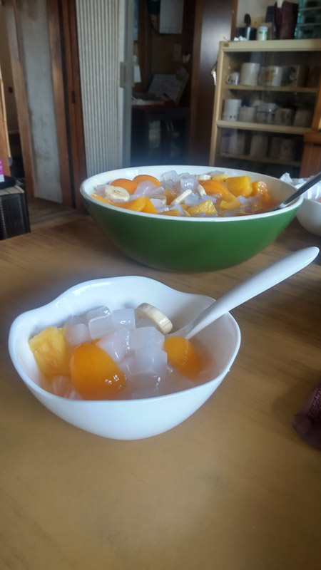 なんかの ぱーちーすか?てくらいの 大盛りもりな フルーツナタ・デ・ココ出来上がり