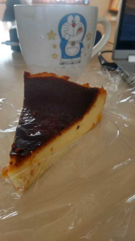 まりせんせが お祝いに チーズケーキを 焼いてきてくださった