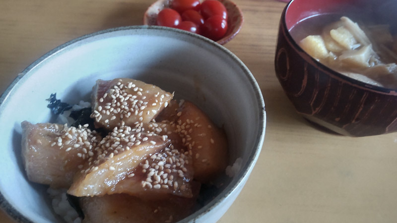 今朝も 鰤漬け丼みたいなん こさえて食べて