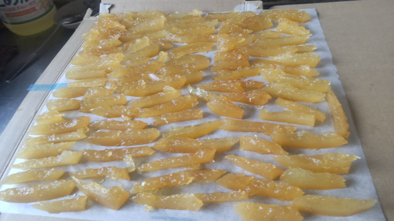 綿皮ごと 煮た 第二弾のを 干すために 並べていたら