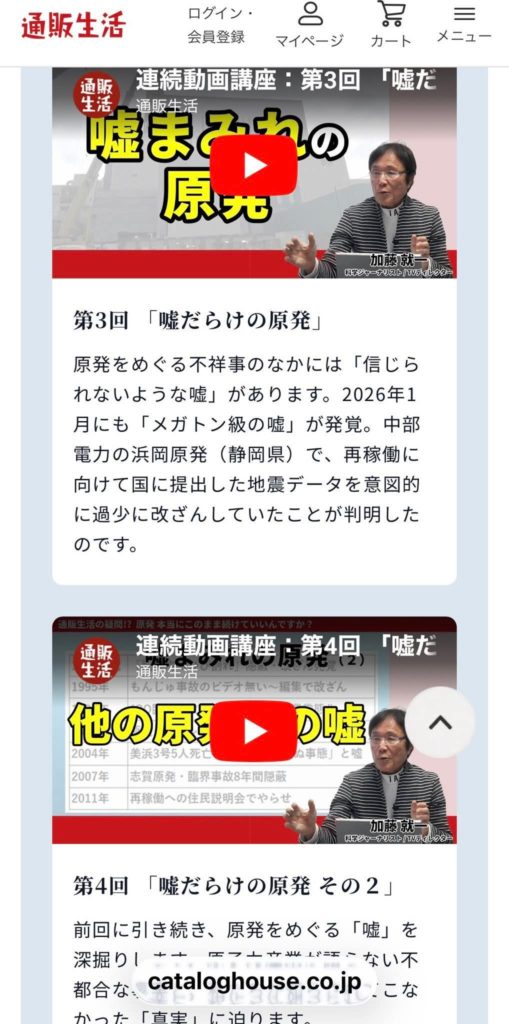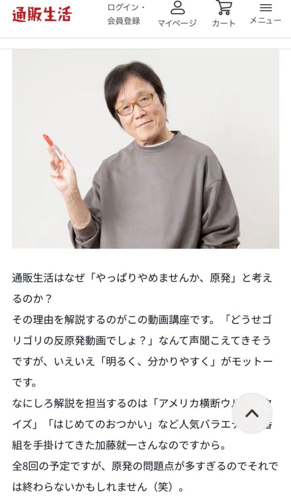 @通販生活Webの 通販生活はなぜ「やっぱりやめませんか、原発」と考えるのか?」との 連続講座に 出演しておられるです